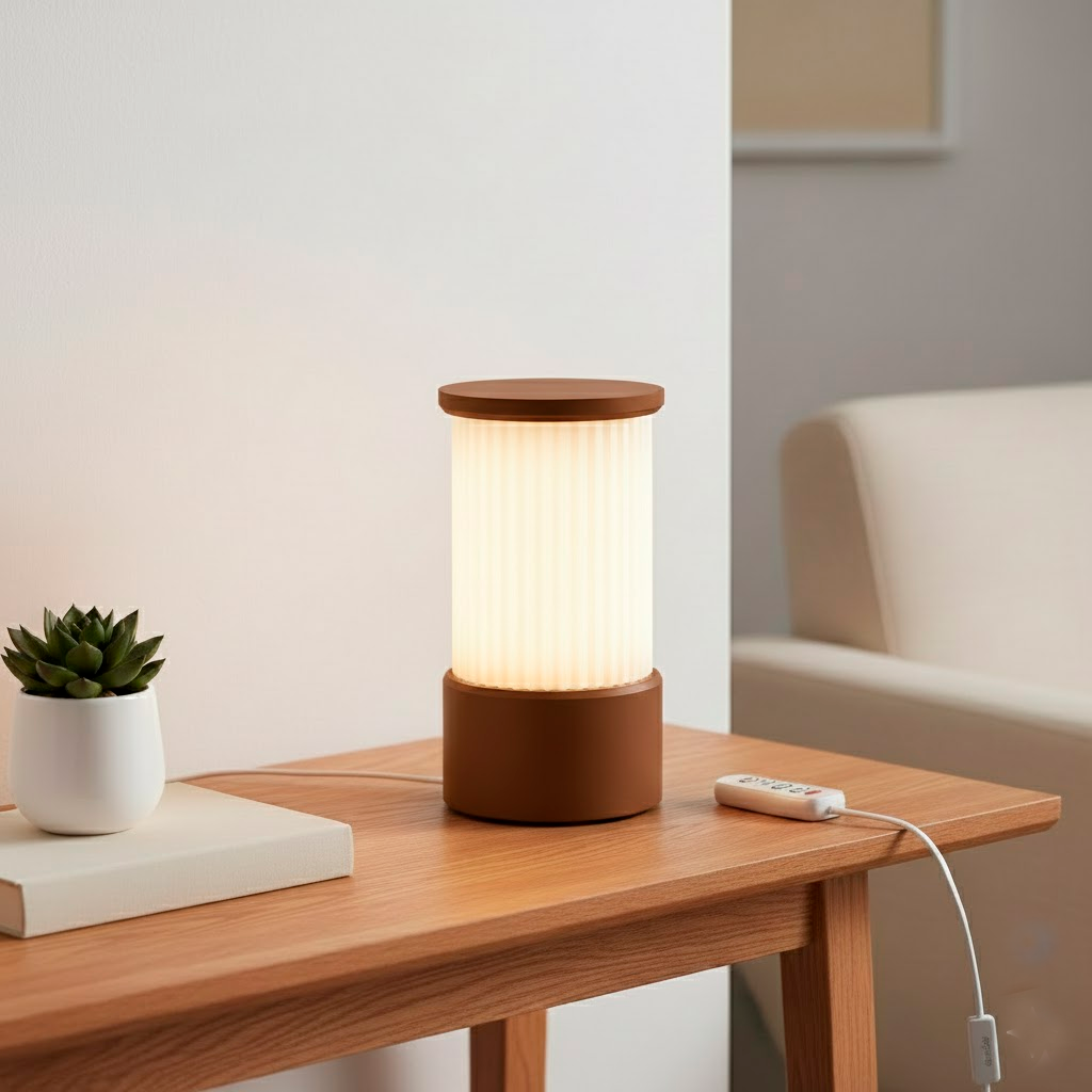 Formato Redondo Cilíndrico: Design moderno com ondulações que criam um efeito visual sofisticado e acolhedor.